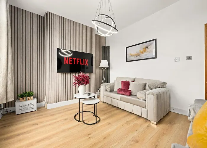Modern And Comfy 3 Bed Manchester Home Near Etihad, Coop Live Arena And Manchester City Centre has a fully-fitted kitchen with an electric kettle, a fridge, and glassware included. Guests can dine at Failsworth Balti House, located in the vicinity of the Manchester property. Guests can enjoy proximity to Deansgate train station, which is around 7 km away.